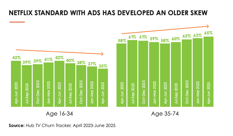 Currently, two-thirds of Netflix Standard With Ads subscribers are age 35+. That older skew has accelerated over the past year.