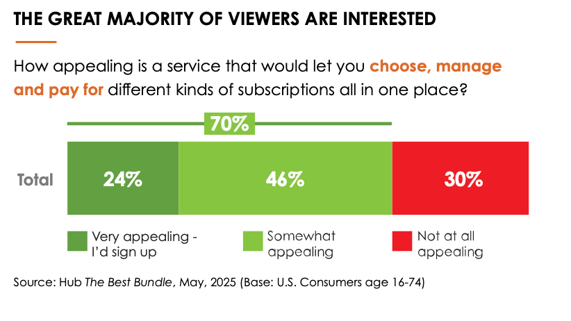 The good news: viewers are open to solutions that make navigating the TV ecosystem easier. In fact, nearly three-quarters say they’d value a service that allows them to manage and pay for all their streaming platforms in one place.